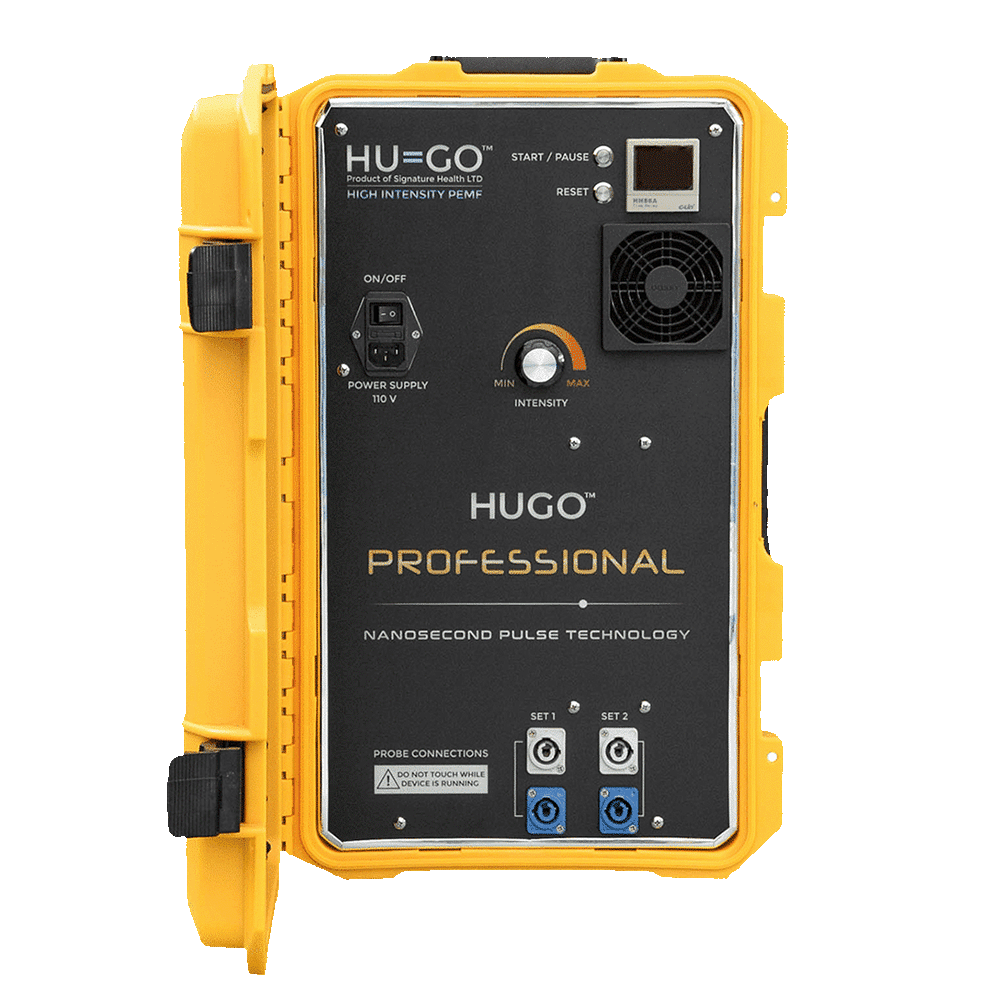 The HOCATT Platinum includes 10 integrated technologies — including one HUGO PEMF driver built in. Run full HOCATT sessions with PEMF included.